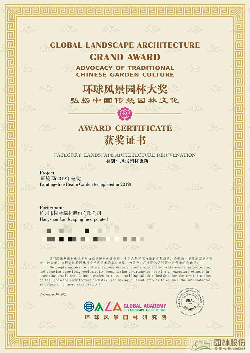 未来,杭州园林股份将以此次获奖为新起点,继续坚守初心、创新前行,不断提升风景园林规划、设计、营造的专业水平,让传统园林文化在当代绽放新光彩,为打造更多生态优美、底蕴深厚的园林作品,建设美丽中国系统服务引领企业持续发力!