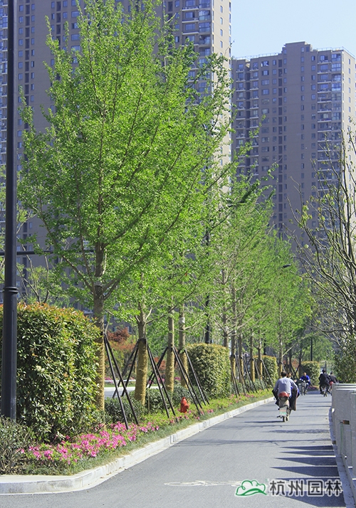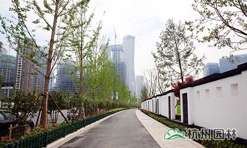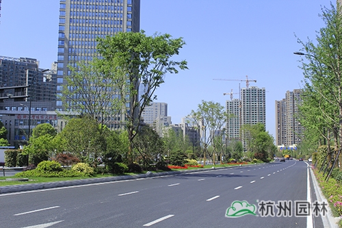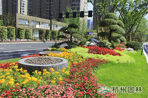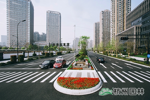 项目是集绿化、美化、文化等为一体的景观大道,四季特色分明,春有日本早樱、垂丝海棠等花满枝头;秋有银杏、红枫色彩明艳,更有桂花一路飘香;夏、冬时节风景又有不同。丰富的植物配置、色彩鲜艳的草花、文化气息浓郁的小品……使得这条道路开阔大气,充满生机。