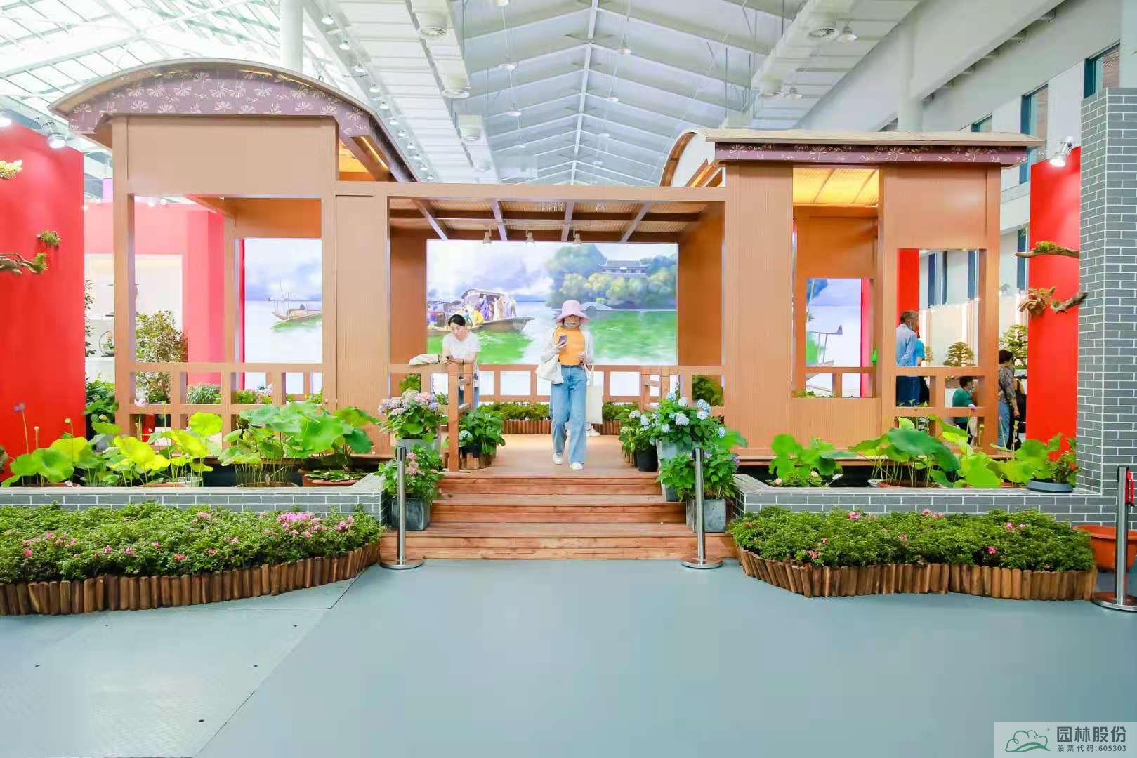 浙江馆内展示了大量浙江园林园艺的新品种,姹紫嫣红,繁花似锦,展示出浙江大花园建设的绚丽多姿。