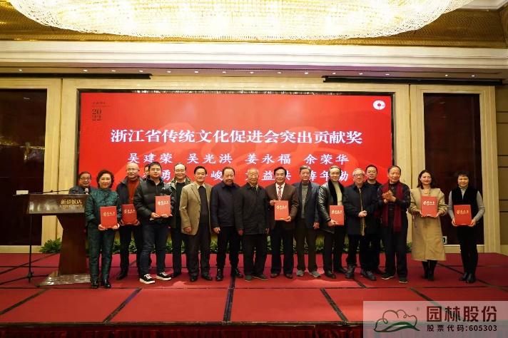 大会还表彰了六年来为浙江省传统文化促进会作出贡献的专家委员会成员、理事会成员,分别颁发了“突出贡献奖”、“最佳贡献奖”。园林股份董事长吴光洪被授予“精神文明建设突出贡献者”称号。